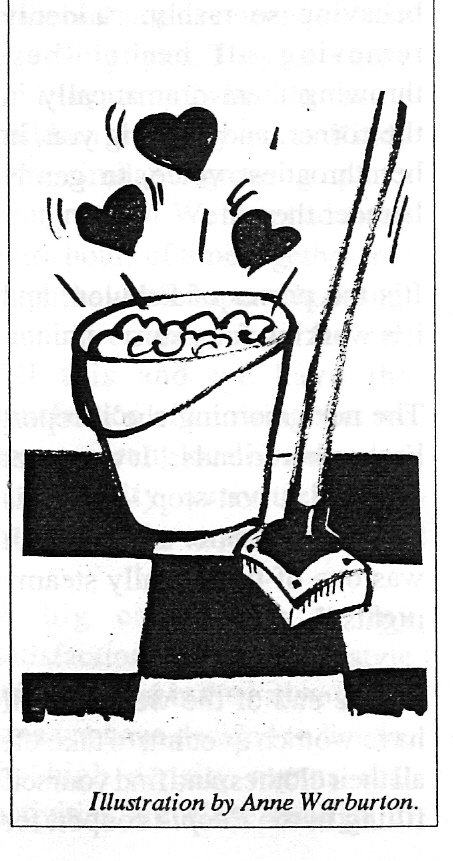 The Laundry's the Key to those Really Steamy Nights by Richard Glover With all the extra housework occasioned by lead-poisoned children, it's lucky someone can joke about it. You can read more humorous stories by Richard Glover in his recently published book entitled ((Laughing Stock - One Man's Battle with Sex, Work and a Son called Batboy", published by Allen and Unwin, $14.95. According to yesterday's front page, the Americans have finally manufactured an effective aphrodisiac - but my wife Jocasta's not interested. She says there' s only one thing that really gets her going - and that's the sight of her husband, bending over in a pair of shorty pajamas, buttocks waggling and thighs clenched, as he scrubs the kitchen floor. Just like powdered rhino horn, it's an aphrodisiac whose appeal may well be linked to its extreme rarity. Knowing that the kitchen floor - and its cleaning - now represents one of Jocasta' s major erogenous zones, I have begun approaching the task with some caution. Jocasta, after all, may be so delighted to see me stir from the couch that she'll demand I spring-clean the whole house. That's the problem with my wife's idea of foreplay - it always seems to involve rubber gloves, a bucket of sudsy water and my spending two hours in the company of major cleaning products. As she puts it herself, lifting the ironing basket into my arms and nodding sternly towards the iron: "If it's not on, it's not on." Many other women get stimulated these days by plug-in appliances, but only Jocasta ends up with a full rack of neatly pressed office-wear. She's my Lysistrata of the pots and pans, and she expects things to be a turn-on for both herself and the iron. That's the thing about a lot of men: they don't realise how women can be erotically affected by the sight of a man ironing. "Who needs Iron John," as various feminists have put it. "It's an Ironing John we're after". Forget spray-on female attractant pheromones, whose optimistic sales pitch appears in People magazine: "You've probably noticed the appeal that some guys have for girls, although they are not handsome. They're wearing pheromones." You'd do better by far to save your $44.95, and instead try a far more effective attractant: that subtle smell of the Sensitive New Age Guy, achieved by a quick squirt of Fabulon behind the ears. Just like the pheromones, the incredible Fabulon works on a woman's sub-conscious - WITHOUT HER KNOWING WHY. Amazingly, she won't understand why she wants to leave the disco, clutching your arm, somehow thinking you're a nice houseworky sort of bloke. Nor, when you get home, will she understand why she's behaving so rashly: suddenly removing all her clothes, throwing them dramatically in the comer, and begging you, in her throatiest voice, to gently launder them. It's the power of Fabulon, and it's working for you. The next morning she'll report back to her friends: "It was great - he did it non-stop - with his iron getting hotter and hotter. It was one of those really steamy nights." By the end of the week, you'll have women queuing to take off all their clothes, and find yourself filling in the People coupon for yet another can. "You've probably noticed the appeal that some guys have for girls, although they're not handsome - that's right, they're wearing Fabulon." But Fabulon isn't the only odd aphrodisiac. My first girlfriend was aroused by something even stranger: the fact that her parents might come home any minute and discover that we were not, as promised, engaged in our divinity project. The father involved was about ten feet tall, a one-time army commando, a lifelong Catholic, and was already on the verge of having both his daughters and me executed on the grounds of suspected communism. Perhaps she liked the fact that, whenever we were together, my heart starting pounding, and the blood would drain from my face. But what a range of emotions I felt when cradled in her arms, with the bedroom door closed - the full gamut from paralysing terror to nauseous fear. Perhaps the Americans would be better off forgetting their chemicals, and instead battle the world's anti-aphrodisiacs: those ten-foot parents with quiet footsteps; or, later in life, those two-foot children with the pitter-patter of incredibly loud feet. The Americans want to help those with suppressed libidos, but we can do the work through legislation. We'll just ban everything likely to reduce the nation's sex drive: polyester shirts, children who won't go to bed, car seats that won't shift back, bras that won't undo, parents that ring after 10 pm, and Bert Newton broadcasts at bedtime. And, of course, we'll demand that all men take a daily dab of that subtle but unmistakable fragrance that is Fabulon. I think I'll pop some on right now. (Reprinted with the kind permission of Richard Glover. First appeared page 12, Sydney Morning Herald, July 30, 1993.) |